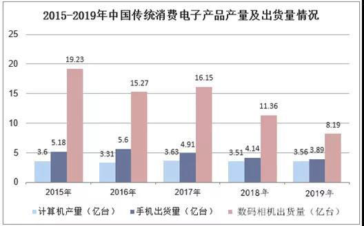 2019年計(jì)算機(jī)產(chǎn)量為3.56億臺(tái),手機(jī)出貨量為3.89億臺(tái),數(shù)碼相機(jī)出貨量為8.19億臺(tái)。2015-2019年計(jì)算機(jī)產(chǎn)量整體上趨于穩(wěn)定,但是手機(jī)出貨量以及數(shù)碼相機(jī)出貨量都存在著不同程度的下降。總體來(lái)看我國(guó)的傳統(tǒng)電子產(chǎn)品消費(fèi)已處于較為成熟的市場(chǎng)階段,整體呈現(xiàn)放緩收縮的趨勢(shì),對(duì)于電池的需求不會(huì)有很大變動(dòng)。