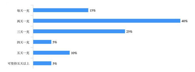從充電次數(shù)來(lái)看,有80%的車主在夏天時(shí),每次充電會(huì)間隔三天或以上,但這一數(shù)據(jù)在冬季時(shí)下降到了45%。在冬季,每天充電和隔天充電的車主人數(shù)分別增加了5%和30%。