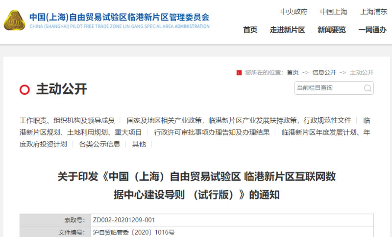 在數(shù)據(jù)中心建設(shè)方面,為確保臨港新片區(qū)新建互聯(lián)網(wǎng)數(shù)據(jù)中心符合國家和上海市相關(guān)要求,同時為數(shù)據(jù)中心考核、規(guī)劃布局、集約化建設(shè)等提供支撐,今年12月臨港新片區(qū)特制定發(fā)布 《中國(上海)自由貿(mào)易試驗區(qū)臨港新片區(qū)互聯(lián)網(wǎng)數(shù)據(jù)中心建設(shè)導(dǎo)則(試行版)》。