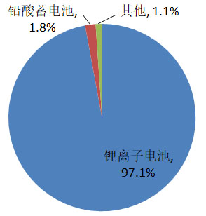 2020年新增投運的電化學儲能中,鋰離子電池儲能新增裝機容量為762.3MW,占比97.1%,排名第一;鉛酸蓄電池儲能新增裝機容量為14.2MW,占比1.8%。如下圖所示。