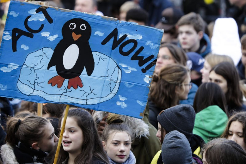 年輕人在柏林集會(huì),要求就氣候變化采取行動(dòng)。有12個(gè)大城市表示要從化石能源中剝離出來(Michael Sohn / Associated Press)