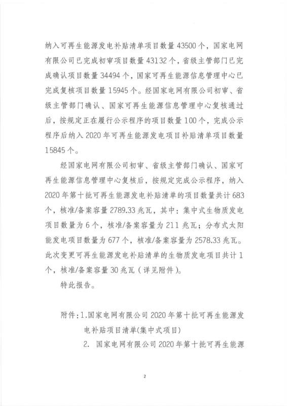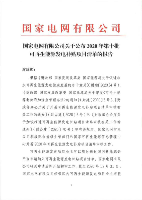 關(guān)于公布2020年第十批可再生能源發(fā)電