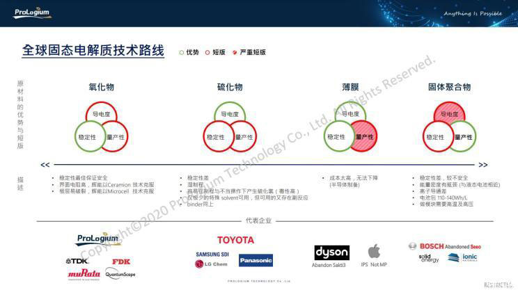 現(xiàn)階段,固態(tài)電池再次進入競爭主賽道。為何“回”到固態(tài)電池?輝能科技方面表示,隨著固態(tài)成組技術(shù)、主動安全機制、界面阻抗與電性優(yōu)化等方面的提升,固態(tài)電池各類問題都將得到有效解決。據(jù)悉,目前已經(jīng)在使用或接近商用的固態(tài)電池的電解質(zhì)有:聚合物、硫化物和氧化物三種。其中,氧化物電解質(zhì)性能最優(yōu)。