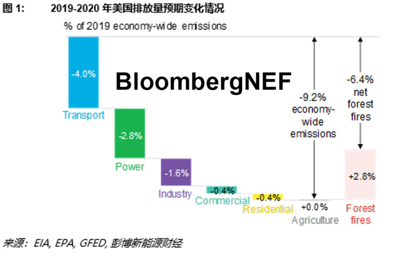 在這極具挑戰(zhàn)性的一年中,氣候治理方面出現(xiàn)了四個(gè)積極的信號(hào)。首先,在疫情的直接沖擊下,我們迎來(lái)了短暫的窗口期。根據(jù)彭博新能源財(cái)經(jīng)的分析,美國(guó)2020年的排放量可能會(huì)下降9%,這意味著唯一一個(gè)退出《巴黎協(xié)定》的國(guó)家突然(盡管是暫時(shí)的)回到了巴黎協(xié)定的目標(biāo)減排軌道上。當(dāng)然,不僅是美國(guó)出現(xiàn)了新冠所致的減排,全球范圍內(nèi)都可能會(huì)出現(xiàn)類似的現(xiàn)象,意外減排也不僅出現(xiàn)在2020年?,F(xiàn)在看來(lái),V型復(fù)蘇是不可能的,根據(jù)彭博新能源財(cái)經(jīng)11月發(fā)布的《2020年新能源市場(chǎng)長(zhǎng)期展望》(NEO 2020),疫情的長(zhǎng)期經(jīng)濟(jì)影響可能相當(dāng)于目前至2050年間2.5年的減排成果。如果航空業(yè)復(fù)蘇緩慢,新冠所致減排量可能更大。