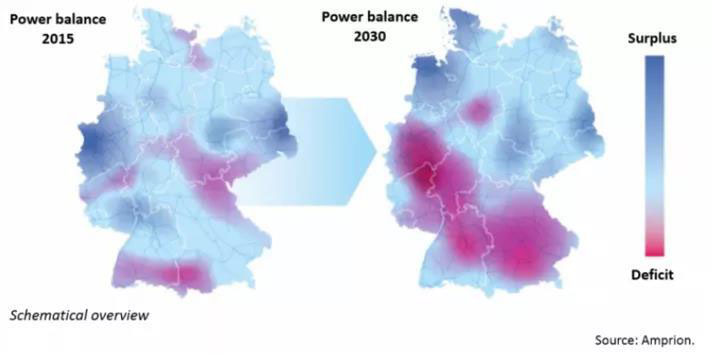 按照Amprion電網(wǎng)公司針對(duì)2015年與2030年情景所做電力平衡,未來(lái)十年后德國(guó)南部電力緊缺,北部電力盈余(南缺北豐現(xiàn)象),然而,目前連接德國(guó)南北部35,000公里的直流輸電線(xiàn)并不能完全承擔(dān)將北部的剩余發(fā)電傳至南部的任務(wù)。特別是在大風(fēng)天,北部的現(xiàn)貨電力市場(chǎng)中有大量廉價(jià)的可再生能源參與競(jìng)價(jià),大大壓低電力批發(fā)價(jià)格,鼓勵(lì)南部用戶(hù)購(gòu)電,然而現(xiàn)有的輸電線(xiàn)卻無(wú)法將這些風(fēng)能全部輸送給客戶(hù)。因此,雖然北部發(fā)電中心可以在一定程度上通過(guò)靈活性調(diào)節(jié)和出口避免浪費(fèi)風(fēng)電,但南部電網(wǎng)運(yùn)營(yíng)商仍需調(diào)度價(jià)格較高的常規(guī)能源機(jī)組進(jìn)行發(fā)電,從而提高了饋電成本。此外,由于各個(gè)北歐國(guó)家都在擴(kuò)大風(fēng)光發(fā)電能力,并且所有市場(chǎng)的用戶(hù)行為都表現(xiàn)出很大的相似性,因此調(diào)整進(jìn)出口以滿(mǎn)足德國(guó)電力市場(chǎng)穩(wěn)定性的能力將會(huì)越來(lái)越有限。這就使得南北輸電線(xiàn)的建設(shè)更有必要。
