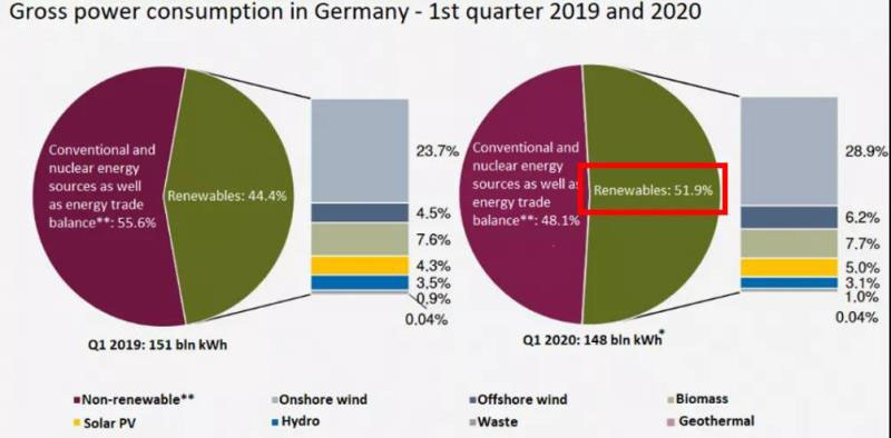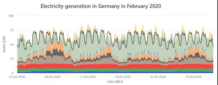 2020年的第一個(gè)季度,德國(guó)總電力消費(fèi)量中來(lái)自可再生能源的電量占比達(dá)到了52%,是第一個(gè)完整的季度中可再生能源貢獻(xiàn)了該國(guó)超過(guò)一半的電力需求。2月甚至創(chuàng)下了單月61.8%的新高。相比之下,2019年第一季度的占比為44%。如此高比例的接入主要與2、3月創(chuàng)紀(jì)錄的風(fēng)電和較高的太陽(yáng)能發(fā)電,以及新冠病毒大流行造成的總電力需求下降有關(guān)。本文將首先研究展示德國(guó)2020年以來(lái)各個(gè)月電力系統(tǒng)的負(fù)荷曲線(xiàn),然后對(duì)德國(guó)電力系統(tǒng)能消納如此高比例的可再生能源的原因進(jìn)行解讀分析。在各國(guó)碳中和的大背景下,了解當(dāng)前德國(guó)電力系統(tǒng)電源結(jié)構(gòu),研判其能源轉(zhuǎn)型的過(guò)去、現(xiàn)在和未來(lái),將是十分有必要的。