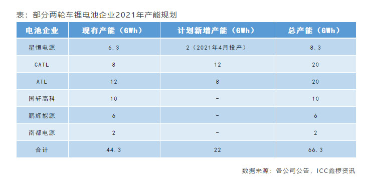 三、2021年兩輪車(chē)鋰電需求預(yù)計(jì)達(dá)40.74GWh