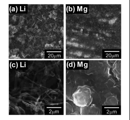 圖24 在1.0 mA cm-2下,Li和Mg沉積后的SEM