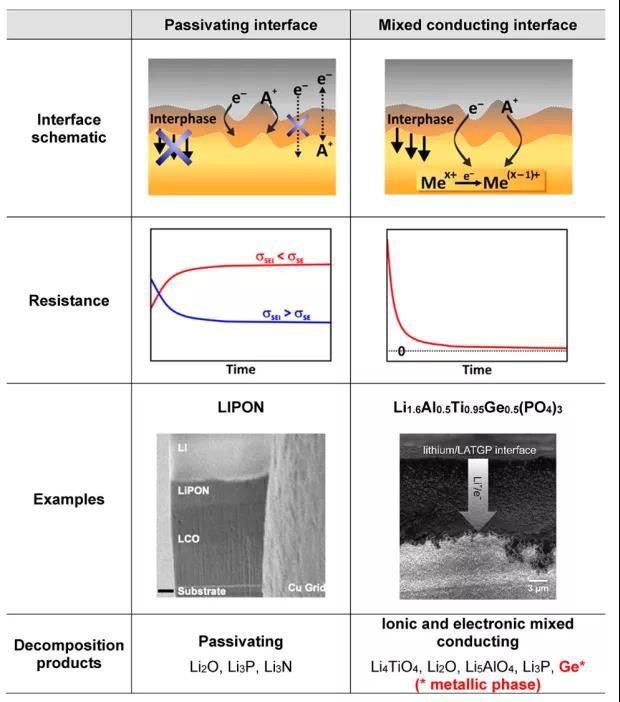 圖22 不同類型SE和金屬陽(yáng)極間的界面示意圖和示例
