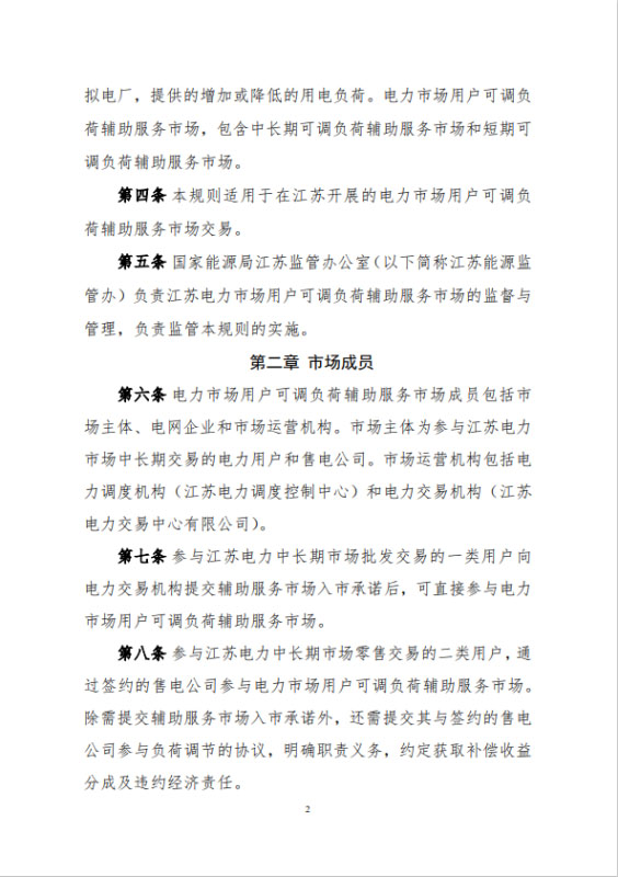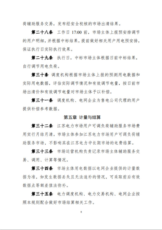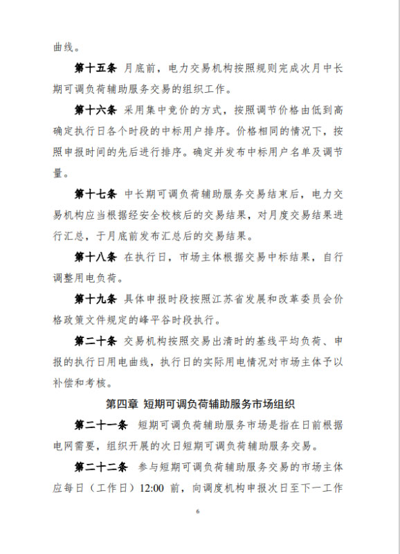 二、請(qǐng)省電力公司、江蘇電力交易中心做好與我省已開(kāi)展的電力需求響應(yīng)工作銜接,確保市場(chǎng)平穩(wěn)有序,待電力現(xiàn)貨市場(chǎng)具備條件后與現(xiàn)貨市場(chǎng)融合。