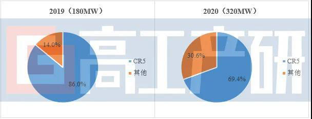 3)市場集中度逐年下降,2020年CR5為69.4%,較2019年降低16.6%。目前市場區(qū)域性訂單多,同時批量供貨的競爭者開始增多,市場競爭開始由一向多發(fā)展,市場集中度在未來2~3年內(nèi)仍會下降。