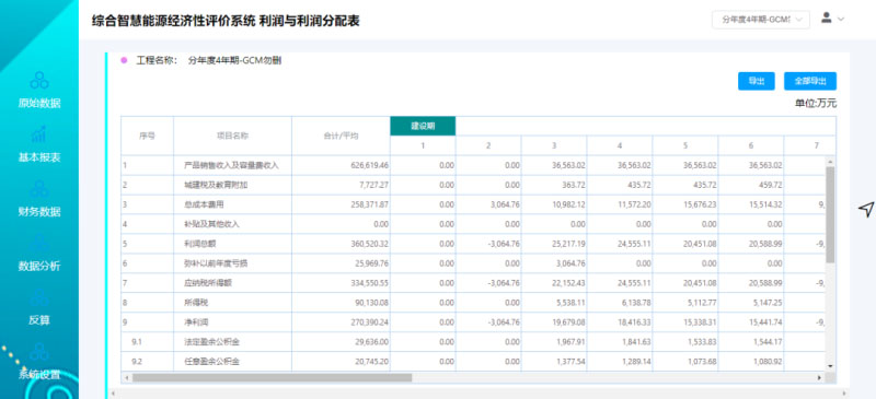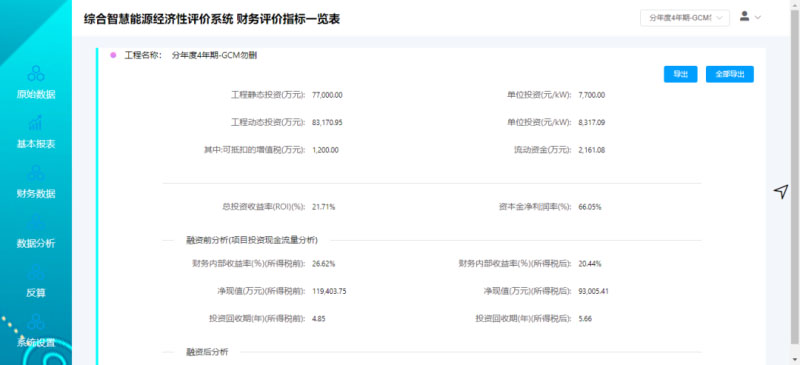綜合智慧能源項(xiàng)目經(jīng)濟(jì)性評(píng)價(jià)系統(tǒng)數(shù)據(jù)分析界面