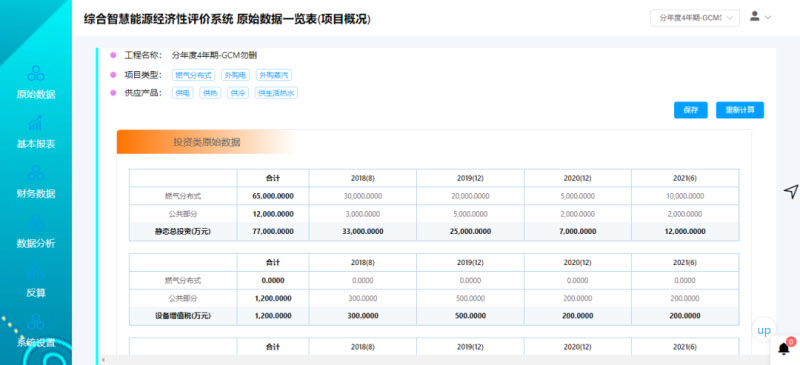 綜合智慧能源項(xiàng)目經(jīng)濟(jì)性評(píng)價(jià)系統(tǒng)數(shù)據(jù)輸入界面