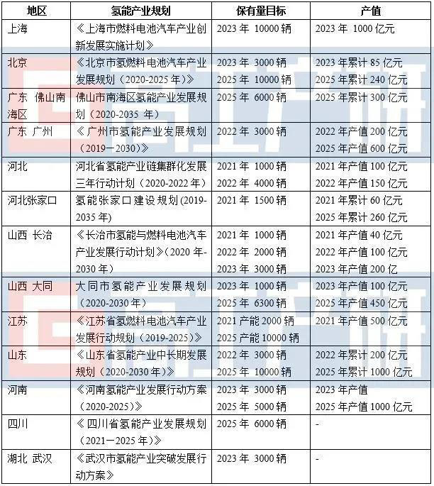 與此同時(shí),2020年以來,北京、廣東、上海、山東、河北等省市紛紛發(fā)布?xì)淠墚a(chǎn)業(yè)中長期發(fā)展規(guī)劃及實(shí)施方案,加快氫能產(chǎn)業(yè)布局及發(fā)展,氫能產(chǎn)業(yè)有望成為地方經(jīng)濟(jì)增長的新動(dòng)能。