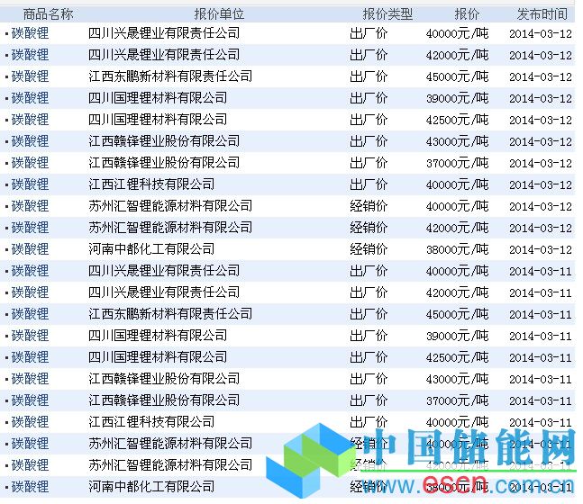 3月11-12日國內(nèi)主流碳酸鋰生產(chǎn)廠家產(chǎn)品報價