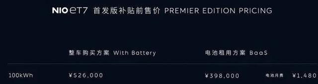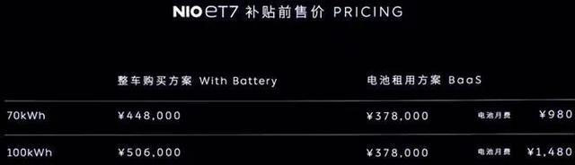 搭載70瓦電池ET7補(bǔ)貼前售價44.8萬元,搭載100瓦電池ET7補(bǔ)貼前售價50.6萬元。ET7首發(fā)版搭載100瓦電池,補(bǔ)貼前售價52.6萬。Baas方案補(bǔ)貼前售價均為37.8萬元,70瓦電池月費980元,100瓦電池月費1480元。