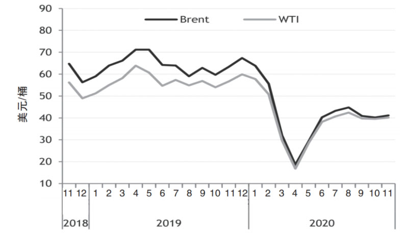 進(jìn)入2020年以來,國(guó)際油價(jià)從1月初的60美元以上逐漸回調(diào),隨著2月多國(guó)相繼暴發(fā)新冠肺炎疫情,市場(chǎng)對(duì)原油需求預(yù)期日益悲觀,國(guó)際油價(jià)繼續(xù)呈現(xiàn)下跌之勢(shì),到3月產(chǎn)油國(guó)減產(chǎn)談判破裂、大幅增產(chǎn),油價(jià)進(jìn)入更深的下跌通道。同時(shí),油價(jià)暴跌引發(fā)股市、金融市場(chǎng)連鎖劇震。4月20日,WTI原油5月期貨價(jià)格報(bào)收于-37.63美元/桶,歷史上首次收于負(fù)值,跌幅305.97%,當(dāng)天盤中最低曾達(dá)-40.32美元/桶,國(guó)際原油市場(chǎng)出現(xiàn)巨幅波動(dòng)。隨后史上最大規(guī)模減產(chǎn)協(xié)議開始執(zhí)行,加之多國(guó)經(jīng)濟(jì)重啟改善原油需求預(yù)期,國(guó)際油價(jià)逐步回升,但仍處于歷史低位。