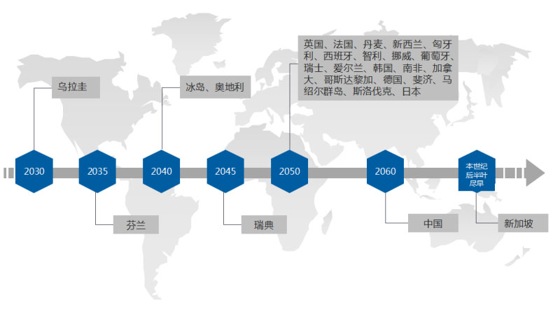 圖7-2 多國(guó)設(shè)定碳中和目標(biāo)時(shí)間