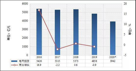 據(jù)國(guó)家能源局?jǐn)?shù)據(jù),2020年1~11月電網(wǎng)工程投資完成3942億元,同比下降4.2%。“十三五”期間,電網(wǎng)投資較“十二五”期間有較大幅度增加。2016~2018年,電網(wǎng)工程投資連續(xù)三年在5000億元以上,分別為5426億元、5315億元、5373億元。2019年有所下降,為4856億元。