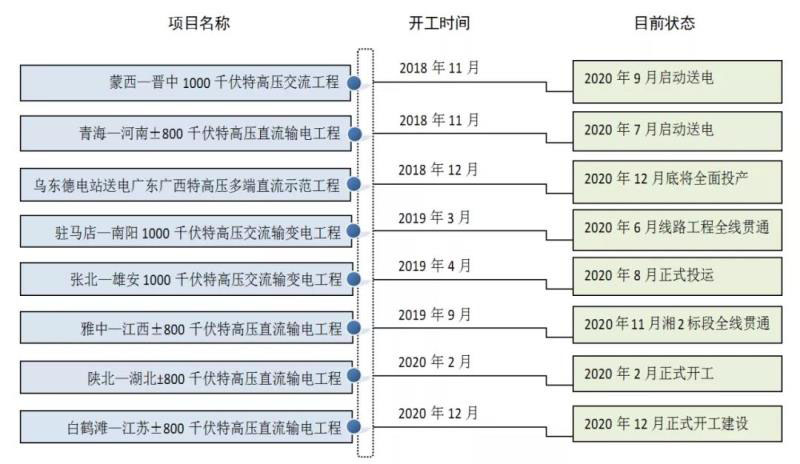 圖5-3 2020年部分在建、投運(yùn)重點(diǎn)特高壓工程