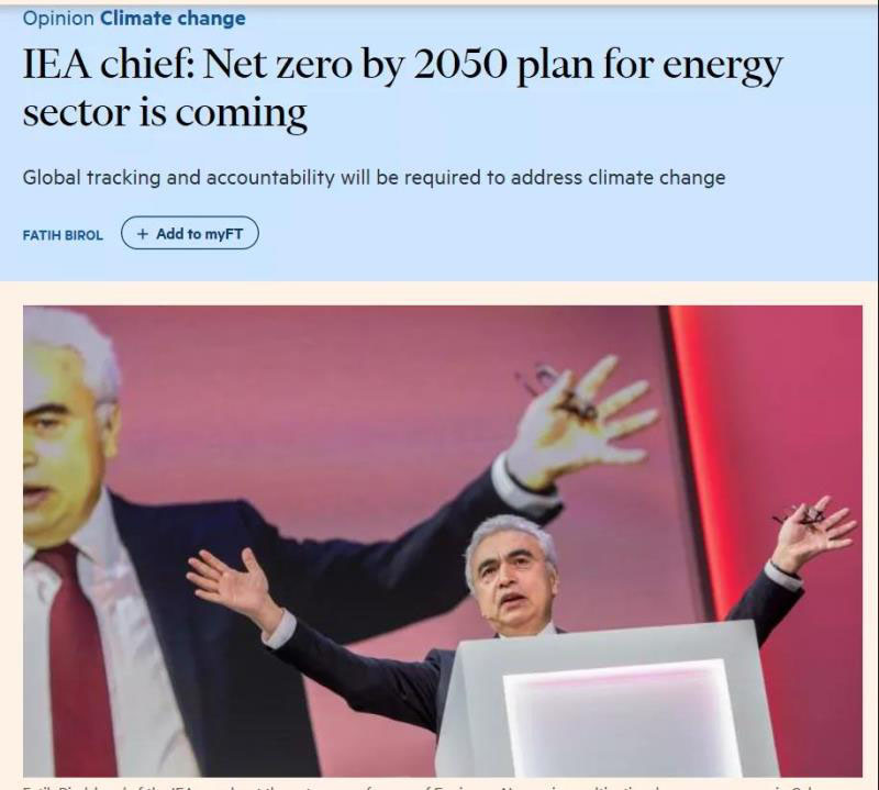 中國(guó)儲(chǔ)能網(wǎng)“國(guó)際能源署署長(zhǎng)法提赫·比羅爾在英國(guó)《金融時(shí)報(bào)》發(fā)表文章,題目是:Global tracking and accountability will be required to address climate change(應(yīng)對(duì)氣候變化需要全球跟蹤和問(wèn)責(zé))