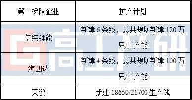 國內(nèi)部分電動(dòng)工具用鋰電池企業(yè)擴(kuò)產(chǎn)計(jì)劃