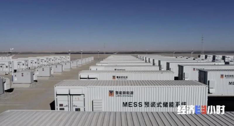 就在光熱塔的東北方,與它相呼應(yīng)的是國內(nèi)首個電源側(cè)接入的百兆瓦時級,集裝箱式電化學(xué)儲能電站。