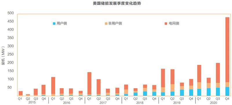 在回答這個(gè)問題之前,我們先看一則新聞。根據(jù)美國儲(chǔ)能協(xié)會(huì)(ESA)和伍德麥肯錫咨詢公司聯(lián)合發(fā)布的報(bào)告,美國儲(chǔ)能市場在2020年第三季度裝機(jī)476MW/764MWH,比之前的單季度裝機(jī)記錄——也就是2020年的第二季度——增長了240%。