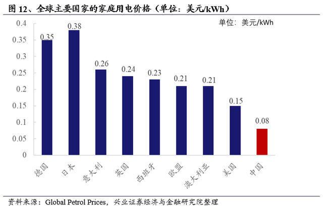 海外國家居民用電電價比國內(nèi)高得多,美國電價為中國的兩倍,歐洲發(fā)達國家電價約為中國的3-4倍,日本電價相對最高,為中國的4.75倍。家庭用電費用成為海外家庭最主要的家庭支出之一。