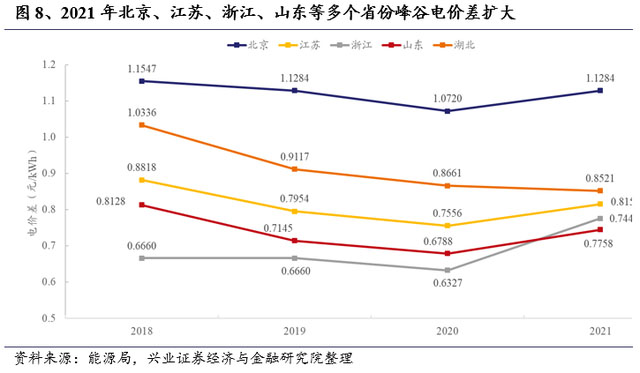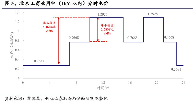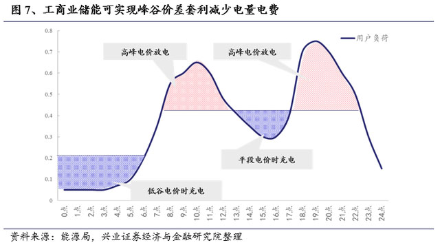 4、在國內(nèi)工商業(yè)用戶側(cè)配置儲能可實現(xiàn)“峰谷價差套利+減少容量電費成本”。我國對于大容量工商業(yè)用電實行“容量電費+電量電費”模式,因此通過配置儲能,一方面通過儲能在低谷電價時充電,高峰電價時放電可減少電量電費,另一方面由于用電負荷的高峰用電時段一般時間很短,通過配置削減用電負荷的“高峰段”,可以減少容量電費成本。