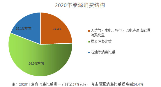 《中華人民共和國(guó)2019年國(guó)民經(jīng)濟(jì)和社會(huì)發(fā)展統(tǒng)計(jì)公報(bào)》顯示,2019年煤炭消費(fèi)量占能源消費(fèi)總量的57.7%,比上年下降1.5個(gè)百分點(diǎn);天然氣、水電、核電、風(fēng)電等清潔能源消費(fèi)量占能源消費(fèi)總量的23.4%,上升1.3個(gè)百分點(diǎn)。由此可知,2020年天然氣、水電、核電、風(fēng)電等清潔能源消費(fèi)量占能源消費(fèi)總量的比重已提高到24.4%左右,而煤炭的消費(fèi)比重進(jìn)一步降至57%以內(nèi)。