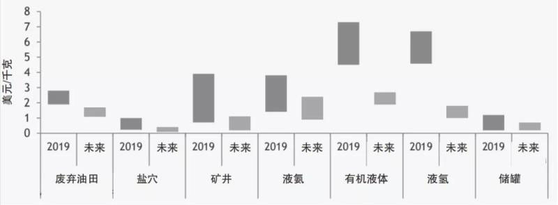 圖2 不同技術(shù)儲氫成本對比