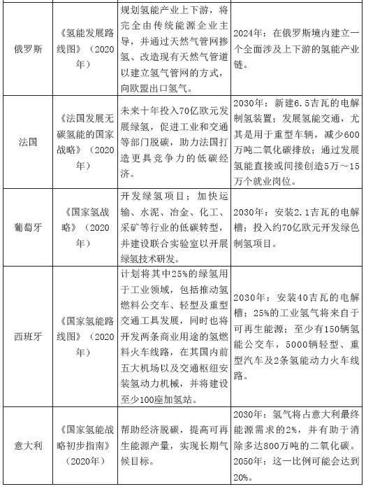 除歐盟、日本外,俄羅斯、美國、韓國、澳大利亞等國也已發(fā)布國家氫能戰(zhàn)略。俄羅斯新版《2035年能源戰(zhàn)略草案》明確將氫能作為能源行業(yè)戰(zhàn)略重點,目標(biāo)是通過擴(kuò)大氫氣產(chǎn)能到2035年成為全球重要的氫能經(jīng)濟(jì)國家。2020年,俄羅斯聯(lián)邦能源部公布本國第一份氫能戰(zhàn)略發(fā)展路線圖,提出2024年前在俄境內(nèi)建立一個完全由傳統(tǒng)能源企業(yè)主導(dǎo)的、涉及上下游的氫能產(chǎn)業(yè)鏈。未來俄羅斯氫氣將通過管道運(yùn)輸?shù)姆绞剑ǜ脑飕F(xiàn)有天然氣管道)出口至歐洲國家,氫氣將成為繼天然氣之后俄羅斯出口歐洲的又一重要能源資源。值得一提的是,俄羅斯氫能計劃中大力發(fā)展的氫氣,并不是通過可再生能源水解方式制備,而是通過天然氣裂解、天然氣高溫催化裂解、核電水解方式制備而成。