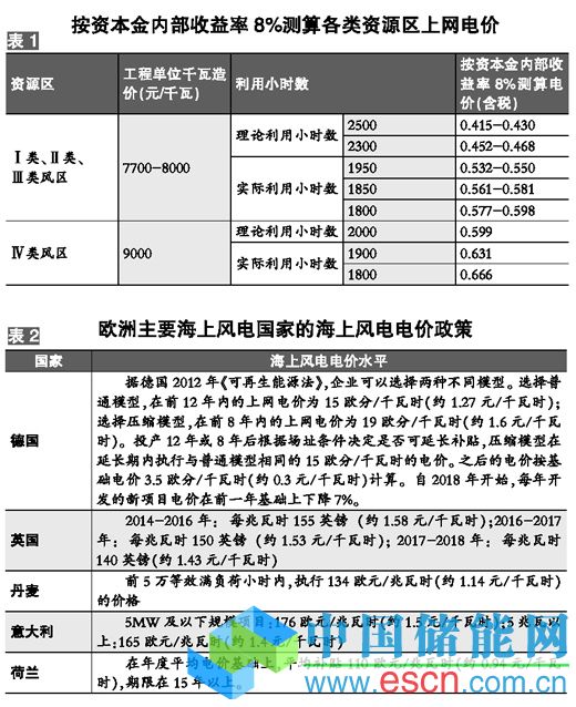 海上風(fēng)電代表著風(fēng)電技術(shù)領(lǐng)域的前沿和制高點(diǎn),是世界上主要風(fēng)電市場(chǎng)重點(diǎn)關(guān)注的發(fā)展方向,也是我國(guó)戰(zhàn)略性新興產(chǎn)業(yè)的重要內(nèi)容。我國(guó)可供開發(fā)的海上風(fēng)能資源豐富,場(chǎng)址靠近負(fù)荷中心,海上風(fēng)電的開發(fā)利用不僅是風(fēng)電產(chǎn)業(yè)向縱深發(fā)展的關(guān)鍵一環(huán),也是帶動(dòng)我國(guó)相關(guān)海洋產(chǎn)業(yè)協(xié)調(diào)發(fā)展的有效途徑,具有重要的戰(zhàn)略意義。然而沒(méi)有電價(jià)政策的支持,就無(wú)法培育出健康的海上風(fēng)電市場(chǎng),沒(méi)有規(guī)?;氖袌?chǎng),就沒(méi)有技術(shù)進(jìn)步的產(chǎn)業(yè)基礎(chǔ),就難以把握住產(chǎn)業(yè)發(fā)展的關(guān)鍵機(jī)遇期。距2010年我國(guó)首個(gè)海上風(fēng)電工程?hào)|海大橋項(xiàng)目首期投運(yùn)已有三年多時(shí)間,但我國(guó)海上風(fēng)電的指導(dǎo)電價(jià)遲遲未能出臺(tái),這已然影響到了海上風(fēng)電的發(fā)展進(jìn)程。海上風(fēng)電特許權(quán)招標(biāo)項(xiàng)目并未像在陸上風(fēng)電上實(shí)施的那樣,為海上風(fēng)電標(biāo)桿電價(jià)的制定提供準(zhǔn)確的依據(jù)?!笆濉逼陂g500萬(wàn)千瓦的海上風(fēng)電裝機(jī)規(guī)劃目標(biāo)的完成時(shí)間目前已經(jīng)所剩無(wú)幾,當(dāng)務(wù)之急是盡快出臺(tái)合理的海上風(fēng)電指導(dǎo)電價(jià)??v觀海上風(fēng)電發(fā)展較好的幾個(gè)歐洲國(guó)家,都有清晰明確的單獨(dú)針對(duì)海上風(fēng)電的電價(jià)機(jī)制,且電價(jià)水平對(duì)產(chǎn)業(yè)發(fā)展形成穩(wěn)定而有力的支撐作用。(表2)其中德國(guó)在2012年修訂可再生能源法的時(shí)候,還上調(diào)了海上風(fēng)電價(jià)格,目的是最大程度地保證政策的穩(wěn)定性和電價(jià)水平的科學(xué)性。我國(guó)可參考別國(guó)經(jīng)驗(yàn)、電價(jià)機(jī)制和水平,結(jié)合我國(guó)海上風(fēng)電工程實(shí)際,制定海上風(fēng)電標(biāo)桿電價(jià)。有鑒于我國(guó)海洋工程條件的復(fù)雜性,以及初期階段工程造價(jià)較高、運(yùn)維費(fèi)用較高的情況,海上風(fēng)電的電價(jià)支持力度不應(yīng)低于表2中所列歐洲各國(guó)的水平。
