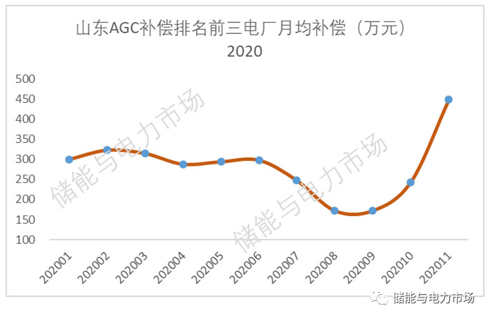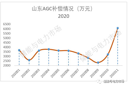 山東2020年11月的AGC補(bǔ)償額陡增至6081萬(wàn)。