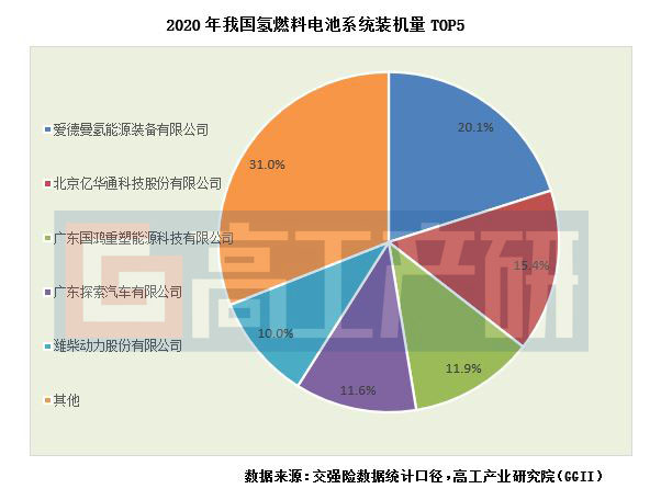 從裝機(jī)量排名來(lái)看,2020年氫燃料電池系統(tǒng)裝機(jī)量占比最高的是愛(ài)德曼氫能,占比20.1%。排名前五的企業(yè)分別為愛(ài)德曼氫能、億華通、國(guó)鴻重塑、探索汽車(chē)、濰柴動(dòng)力,前五家企業(yè)裝機(jī)量占2020年中國(guó)氫燃料電池系統(tǒng)裝機(jī)量的69%。