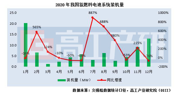 通過(guò)高工產(chǎn)業(yè)研究院(GGII)發(fā)布的《燃料電池汽車(chē)月度數(shù)據(jù)庫(kù)》統(tǒng)計(jì)顯示,2020年我國(guó)氫燃料電池汽車(chē)銷(xiāo)量為1,497輛,同比下降53%。其中,氫燃料電池客車(chē)銷(xiāo)量為1,351輛,同比增長(zhǎng)15%;氫燃料電池專(zhuān)用車(chē)銷(xiāo)量為146輛,同比下降93%。