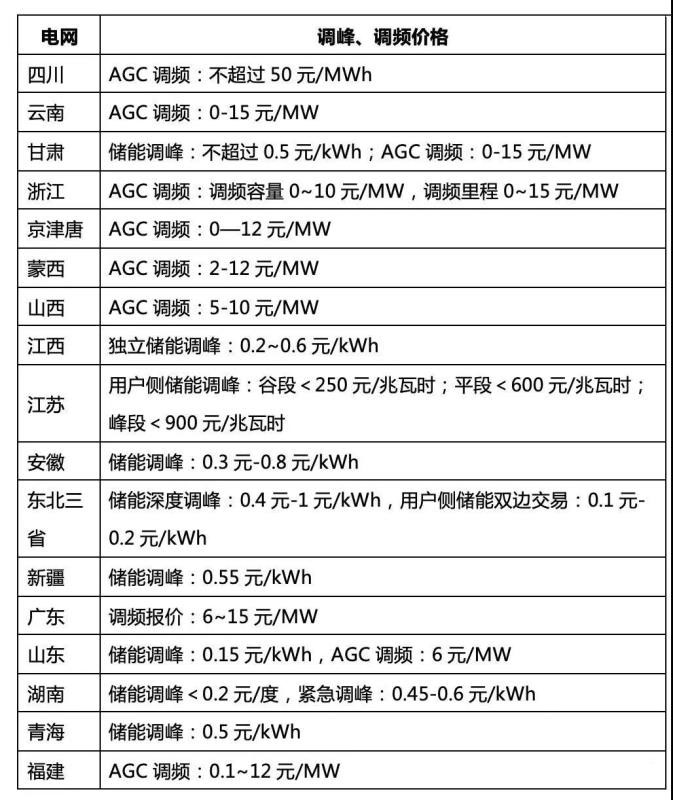 (19省最新的調(diào)峰調(diào)頻輔助服務(wù)政策,如表所示)