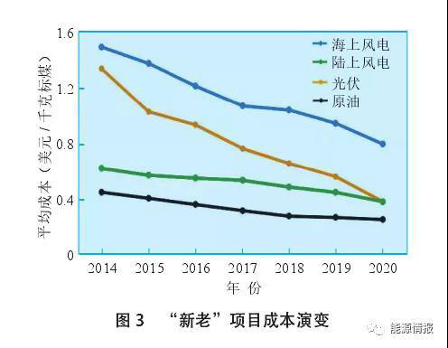 與此同時(shí),當(dāng)前石油市場(chǎng)基本面風(fēng)險(xiǎn)提升、資本回報(bào)平衡改變、低油價(jià)“常態(tài)化”等趨勢(shì)增加了石油公司傳統(tǒng)油氣項(xiàng)目回收投資的難度。2017–2019年在油價(jià)相對(duì)較高的環(huán)境下,國(guó)際石油公司的平均資本回報(bào)率(ROACE)雖略有回升,但仍處于個(gè)位數(shù)區(qū)間。經(jīng)風(fēng)險(xiǎn)評(píng)估調(diào)整后“新老”項(xiàng)目(“新”即可再生能源項(xiàng)目)的投資成本及回報(bào)率差距逐步縮小。在此情景下,傳統(tǒng)項(xiàng)目的回報(bào)率與風(fēng)險(xiǎn)較低的風(fēng)電、光伏項(xiàng)目的平均回報(bào)率基本相當(dāng),油氣項(xiàng)目相對(duì)新能源項(xiàng)目的競(jìng)爭(zhēng)優(yōu)勢(shì)下降。另外,疫情蔓延促進(jìn)了人類生活、生產(chǎn)方式的改變,從而引導(dǎo)能源消費(fèi)方式發(fā)生變革,將加速化石能源消費(fèi)峰值的提前來(lái)臨。而可再生能源市場(chǎng)相比于石油市場(chǎng)更為穩(wěn)定,波動(dòng)更小,正在成為部分能源公司未來(lái)資源配置的重點(diǎn)方向。
