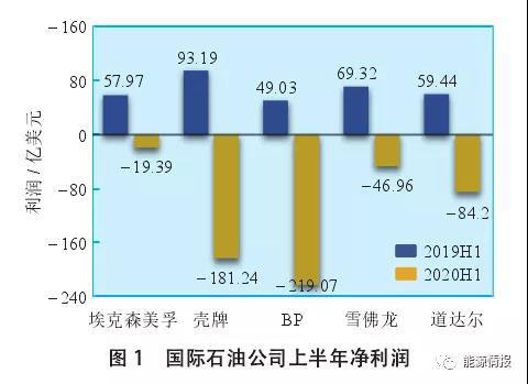 2020年上半年BP公司營(yíng)業(yè)收入同比大幅下降34.3%,凈利潤(rùn)虧損達(dá)到219.1億美元,虧損額和虧損幅度在五大國(guó)際石油公司中均居首位(見(jiàn)圖1),僅其第二季度歸屬母公司凈利潤(rùn)就已虧損168.5億美元。