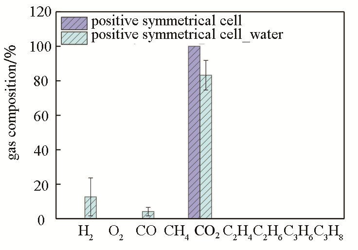 (2)正極對稱電池循環(huán)20周后,重新注入微量水分繼續(xù)循環(huán)3周,GC結果檢測到H2,說明對稱電池內部原有的微量水分對測試結果的影響可忽略。
