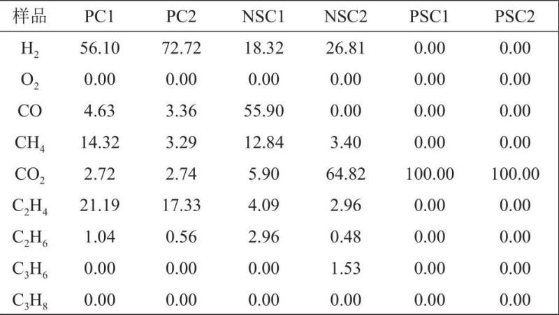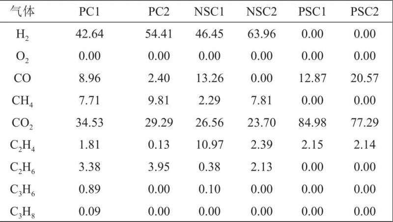 2.2 在不同實驗環(huán)境和體系下產(chǎn)生的氣體成分分析