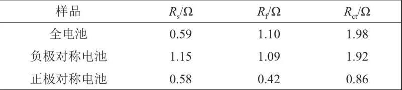 表2 全電池,負極對稱電池及正極對稱電池阻抗譜擬合結果
