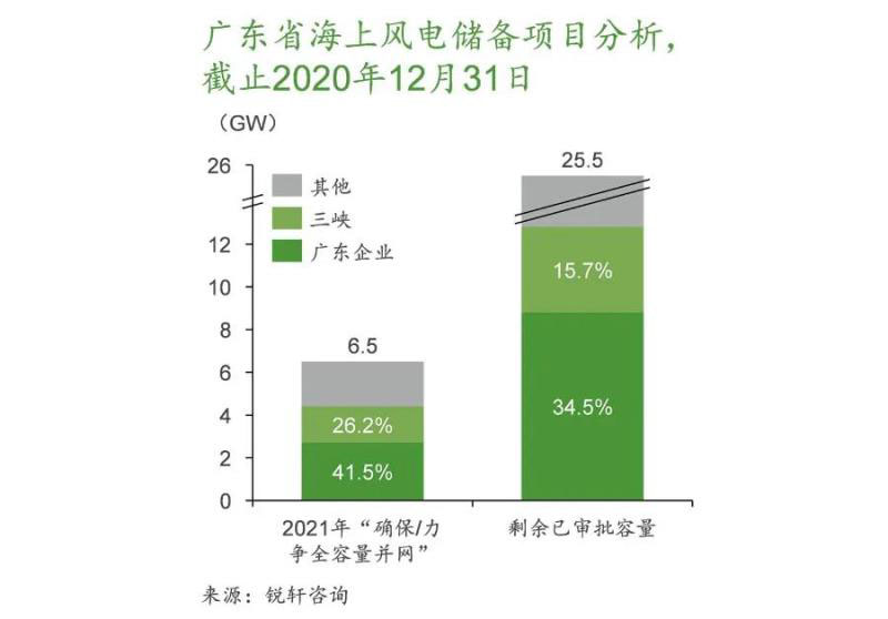 但是,如三峽陽西沙扒3至5期等多數(shù)項目僅剛進入開工建設階段,多數(shù)項目未啟動風機吊裝,而部分項目仍未鎖定吊裝船及團隊,若不對“全容量并網(wǎng)”條件放寬要求,2021年目標預計將難以實現(xiàn)。截止2020年末,廣東省共計約32GW的海上風電項目已獲得審批(未并網(wǎng)),減去該意見中“確?!?021年并網(wǎng)的3.9GW項目,仍有28.1GW的項目無法進入中央補貼目錄。