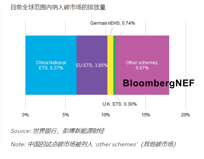 目前全球排放量中納入碳市場的排放量占比