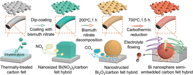 文章名稱:Xuelong Zhou, Qixing Wu, et al. Densely populated bismuth nanosphere semi-embedded carbon felt for ultrahigh-rate and stable vanadium redox flow batteries. Small, 2020.