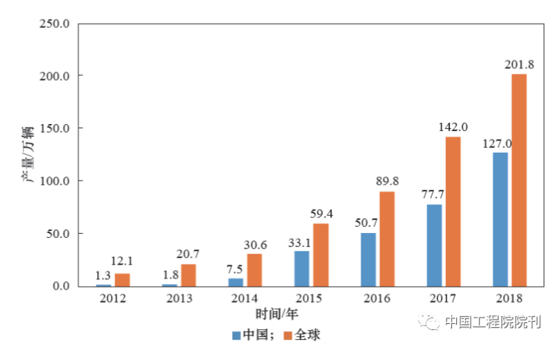 圖1 中國與全球新能源汽車產(chǎn)量對比