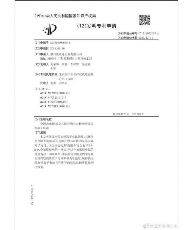 實際上,固態(tài)電池是比較于現(xiàn)在的液態(tài)的電解質(zhì)電池而言的,因為其電解質(zhì)為固態(tài)而得名,在結(jié)構(gòu)上有更簡單且具有較好的絕緣性,能夠有效避免因正、負極接觸而發(fā)生短路現(xiàn)象,從而有更高的安全性,但固態(tài)電池是的導(dǎo)電率較差,充電效率不高,且成本較高,一直無法得到大規(guī)模應(yīng)用。從這些專利來看,比亞迪在固態(tài)電池研究上也未雨綢繆多年,不過具體什么時候量產(chǎn)上市,目前還沒有信息。關(guān)于固體電池的詳細解讀,可點擊《噱頭還是黑科技?固態(tài)電池究竟為何物》進行閱讀。(文/汽車之家 姜田雙 圖片來源:微博網(wǎng)友)