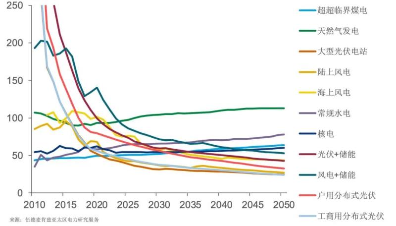 據(jù)國(guó)際能源咨詢公司伍德麥肯茲近期發(fā)布的報(bào)告,未來十年,火電的成本還將上升,光伏、風(fēng)電則有40%—50%的成本下降空間。2035年是一個(gè)分水嶺,屆時(shí)中國(guó)所有可再生能源發(fā)電的成本都將比煤電低。如果再加上為碳排放支付的費(fèi)用,煤電成本將高出10%—15%。