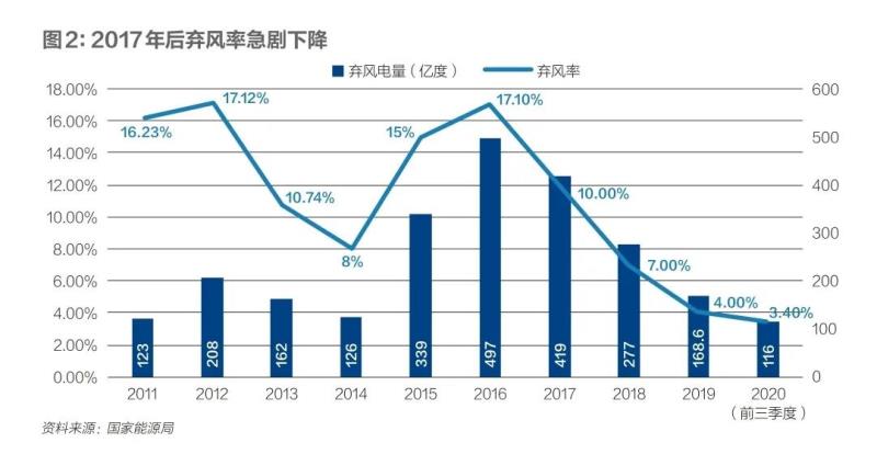 棄風(fēng)棄光一度是困擾中國(guó)新能源發(fā)展的關(guān)鍵問題,2016年前后,棄風(fēng)率一度超過30%,2017年之后雖然迅速緩解,但在未來更高比例的新能源裝機(jī)下,消納隱憂依然揮之不去。